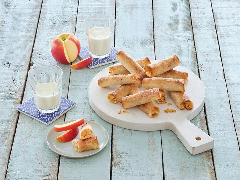 - Divide the apple between the bread slices and roll up to enclose the filling.